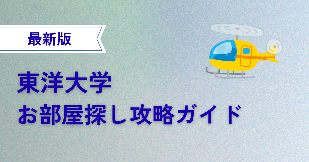 東洋大学は都心の白山から埼玉の川越・朝霞までエリアが広範囲です。そのため、キャンパスごとに検索条件を細かく絞り込める大手サイトを使うのが失敗しないコツです。